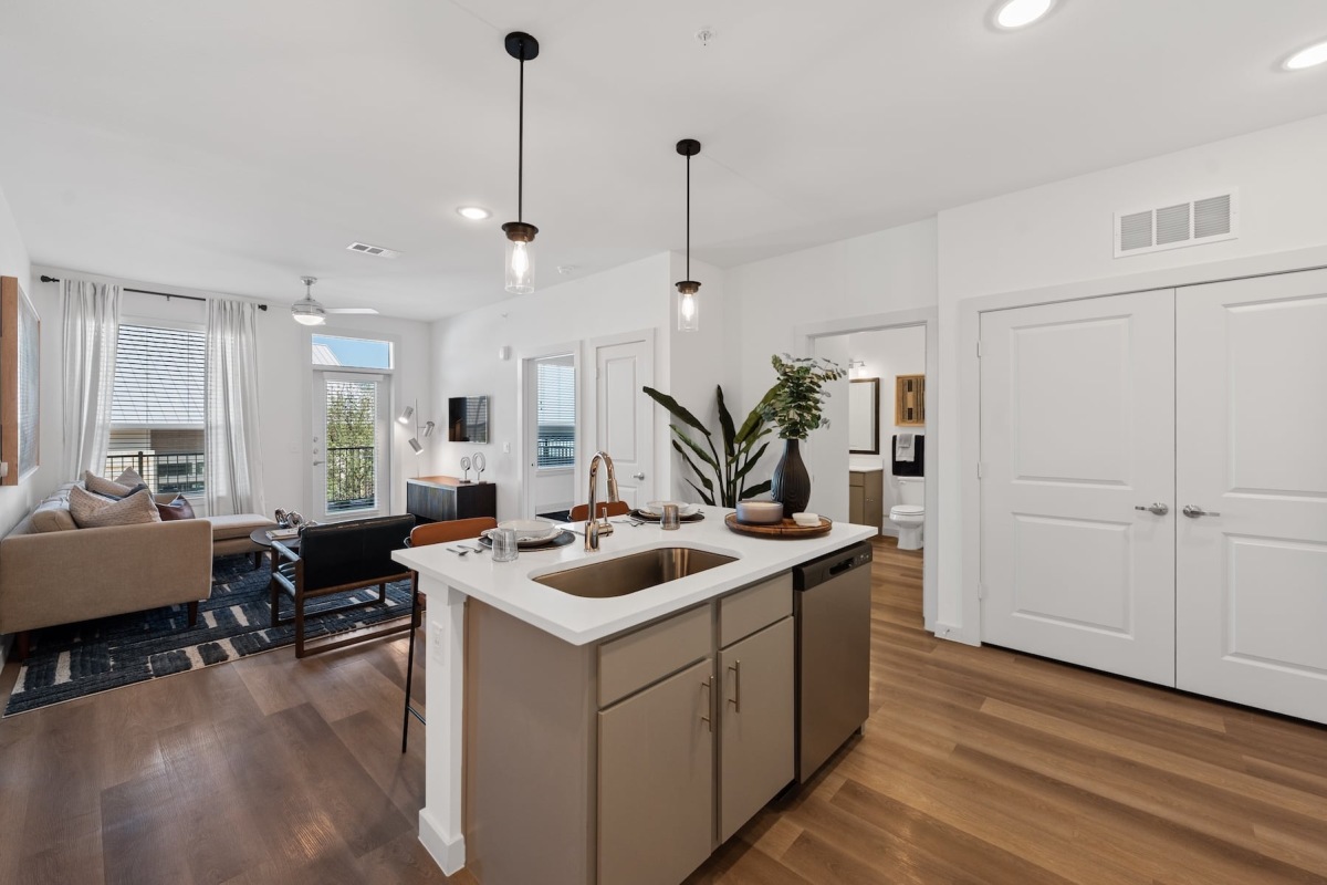 Rejuvenate beside our resort-style pool or try your hand at our multi-sport simulator. Burn calories in the state-of-the-art fitness center, complete with a rock climbing wall, then challenge a friend to a game of shuffleboard. Take your favorite pup to our spacious dog park (yes, we’re pet-friendly!) or meet your friends and neighbors for a drink at our beer garden or the complimentary coffee station.